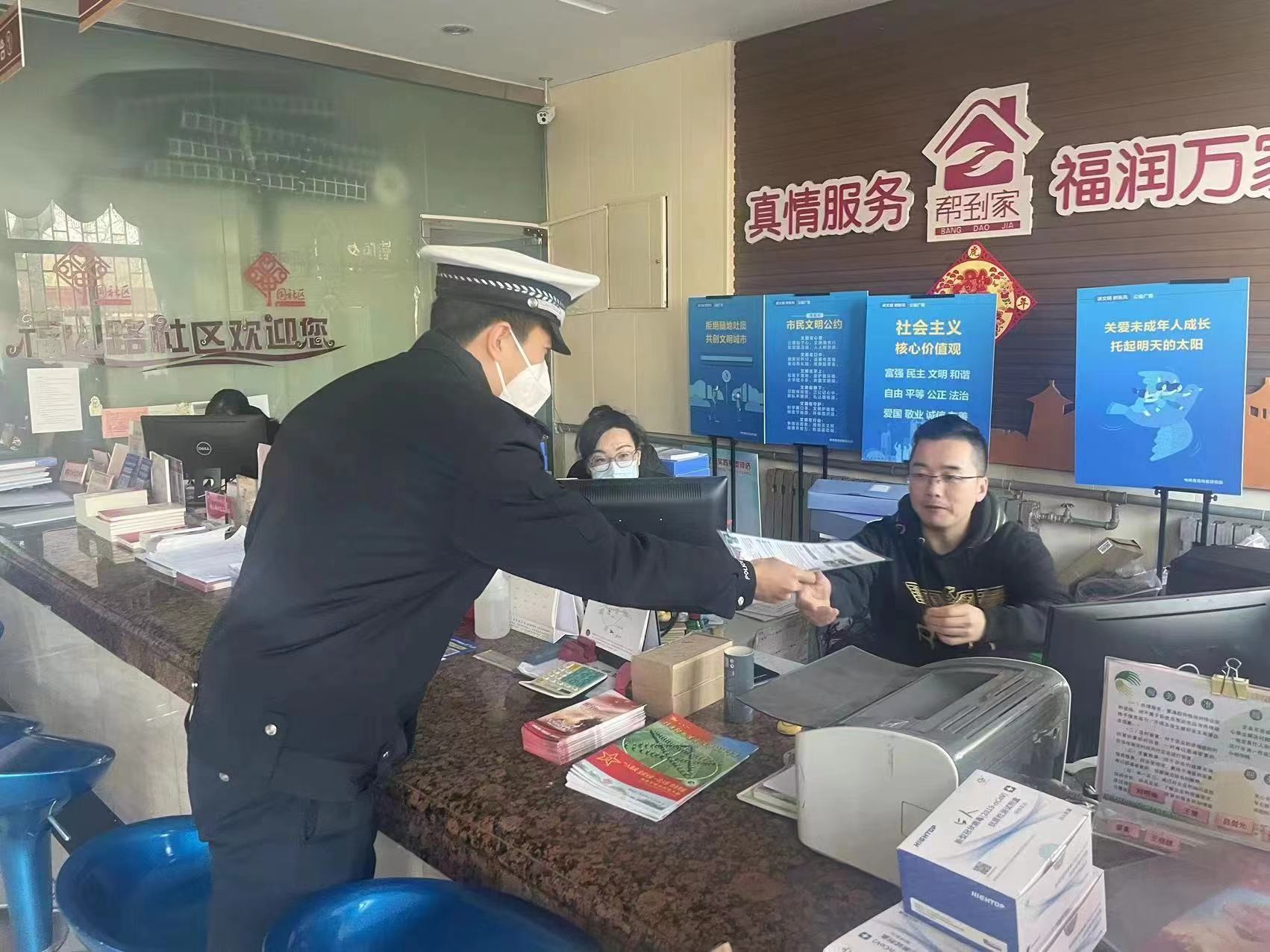 1月29日,文登路中队走进福山路社区,专门为工作人员开展了一次“开工第一天”活动,中队人员通过发宣传彩页的形式,向驾驶员讲述了驾驶安全案例,并希望以这些典型案例为警钟,规范驾驶,文明驾驶,共创交通安全大环境。