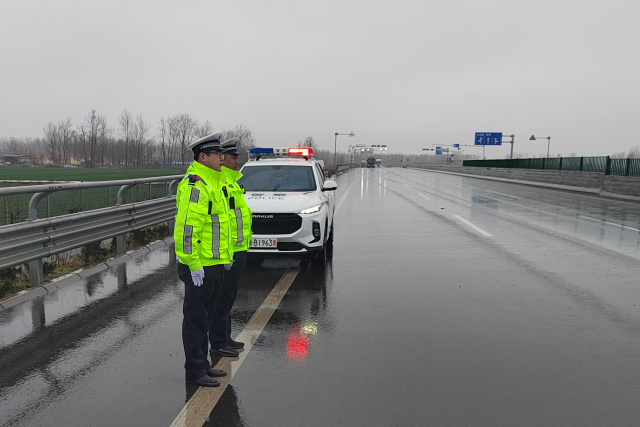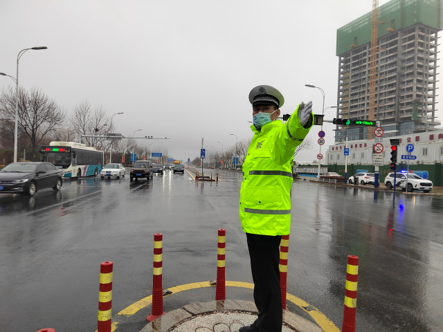 4月4日凌晨,西海岸新区瞬时雨量骤增,多处路段因排水不畅出现了积水险情。黄岛交警迅速反应,紧急启动恶劣天气应急措施,提高巡逻密度,在城区各个路口处,交警们穿着反光雨衣,冒着大雨坚守岗位,通过警灯闪烁、荧光绿值守提醒等方式,提醒路面驾驶员要“降速、控距、亮尾”,警示非机动车绕行渗水路段,防止道路交通事故和涉水类险情的发生。