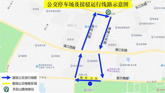 驶入路线:漓江西路、天目山路、青云山路、罗浮山路、银沙滩路。
