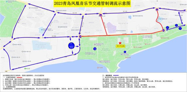 2023青岛凤凰音乐节将于2023年6月22日至6月23日,在青岛西海岸金沙滩景区凤凰之声大剧院音乐广场举行,现场观众每日3万人。为确保金沙滩景区及啤酒城周边道路交通安全有序畅通,根据《中华人民共和国道路交通安全法》第三十九条,公安机关交通管理部门将适时启动交通管制,由此带来的不便敬请谅解。现公告如下: