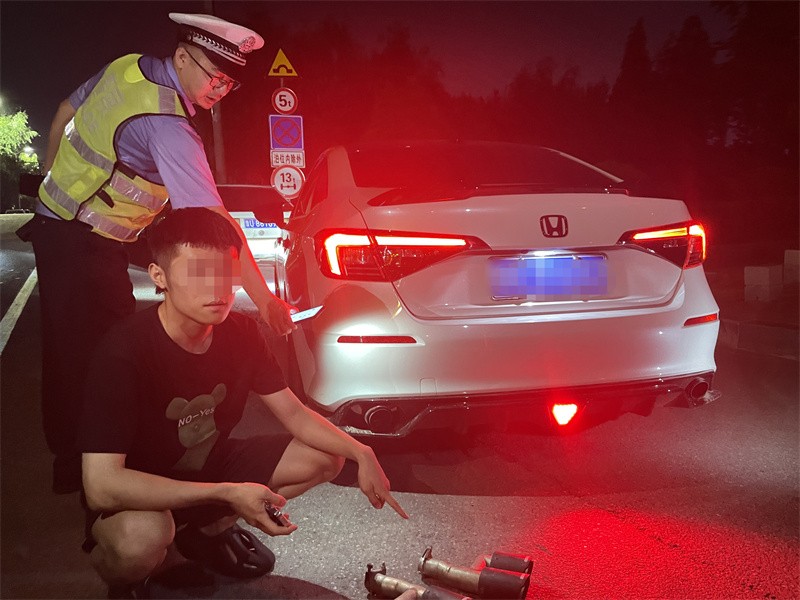 “你这个声音太大了,一看排气管就是改装过的!”7月8日晚22点,黄岛交警在东岳中路附近开展夜查整治行动,一辆黑色轿车行驶中发出巨大轰鸣声,检查后发现其排气装置明显改装过。民警随即对其进行宣传教育,作出处罚,并责令司机王某限期将车辆恢复原样。7月9日15时,一辆轰鸣的黄色轿车行驶至融合路被交警查获,经检查,车主私自非法加装了排气装置,被交警依法处罚,同时责令司机尹某某限期将车辆恢复原样。