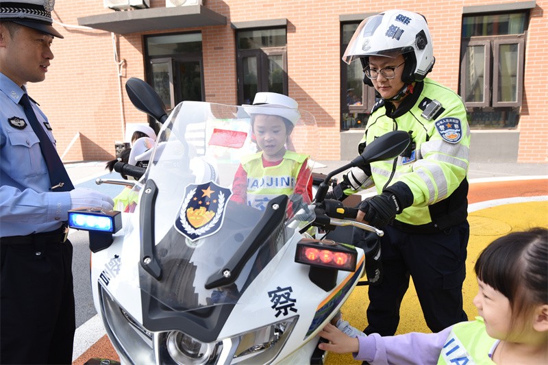 活动中,宣讲民警根据幼儿园孩子们的年龄特点,让孩子们“化身”交警与交通参与者,现场模拟道路交通环境,摆设交通标志小道具,从而身处“道路交通环境”中;交警叔叔声情并茂讲述新版“龟兔赛跑”的故事,极大提升了小朋友们学习交通安全知识的热情和兴趣,小朋友们积极举手,大胆表达着自己对交通安全的认识;铁骑队员在孩子们面前演示交通指挥手势操,孩子们也纷纷效仿练习,进而学会在出行中服从交警指挥;宣讲民警用浅显易懂的语言,让孩子们在实践中理解红绿灯、斑马线以及交通安全标志所代表的意义,同时,重点讲述了与日常生活息息相关的“要走斑马线”“红灯停、绿灯行”等交通规则。结合从校园周边的实际入手,详细为孩子们讲解如何安全过马路、安全乘车、汽车盲区及遵守交通信号灯等交通安全常识,使孩子们在轻松愉悦的氛围中学到了“不闯红灯”“马路不是游乐场”“使用儿童安全座椅”“一盔一带”等一些基本防护知识,进一步提高了孩子们的交通安全意识。