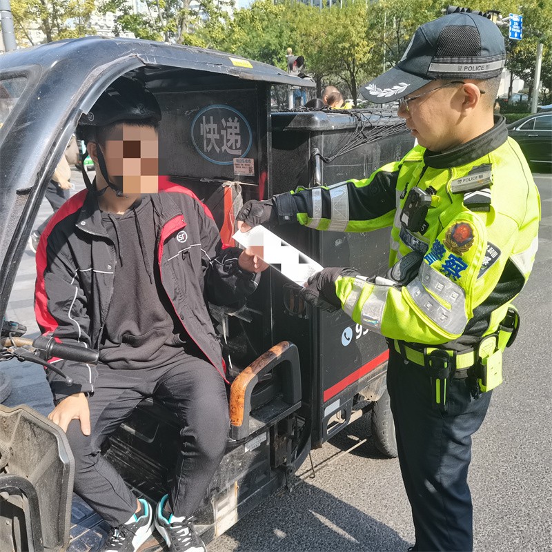 大约10分钟后,就在同一地点,一辆快递电动车由山东路北向南方向行驶而来,驾驶员因未戴头盔,被执勤民警现场拦截。当民警指出其未戴头盔上路时,驾驶员祁某某连忙辩解道“昨天自己刚烫的头发,戴头盔怕把发型给压乱了。”紧接着,慌忙从车座里拿出了头盔带到了头上。民警告知祁某某“安全头盔佩戴头上能保安全,带在车上起不了任何安全作用,保持形象固然重要,但是安全更重要,请遵守交通法律法规。”根据《中华人民共和国道路交通安全法》相关规定,民警对驾驶员祁某某未按规定佩戴安全头盔的违法行为处以20元罚款。