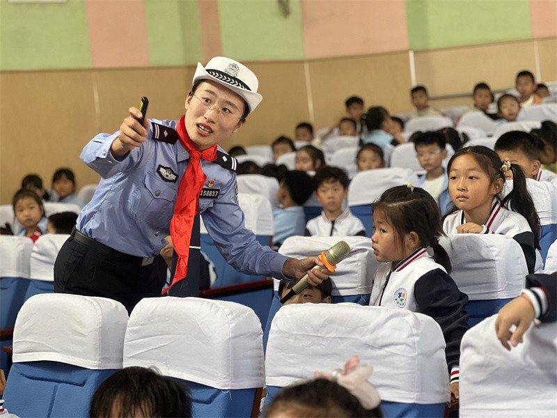 11月1日上午10点半,青岛交警李沧大队宣讲团走进青岛市李沧区王埠小学,给全校300余名一年级小学生送上交通安全大礼包,引导小学生从小树立交通安全意识,遵守交规,平安出行。