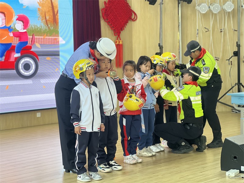 在报告厅,孩子们表现出对交通安全浓厚的兴趣,纷纷举手告诉交警刘阿姨自己上下学乘坐的各种交通工具。怎样才能做到安全走路、安全乘坐电动车、安全乘坐小轿车等等,这些常见的出行问题在小小的孩子眼中都是一个大大的问号。刘阿姨耐心的给孩子们讲解各种过街设施,教会孩子在没有过街设施的地方要观察来车的方向,提醒孩子们乘坐电动车一定要佩戴好安全头盔,乘坐小轿车要坐在后排还要系好安全带等等。通过观看事故视频,孩子们明白为什么不能翻越护栏、为什么不能在大车的周边玩耍等,交警阿姨还给孩子们分享了“荷式开门法”,避免“开门杀”引发交通事故。针对孩子的年龄特点,刘阿姨还讲解了交通法律法规中有关骑自行车上路、乘坐电动车、摩托车的年龄要求,叮嘱孩子们不要使用滑板、旱冰鞋等滑行工具上路。一堂课下来,孩子们听得津津有味,回答问题也十分踊跃。