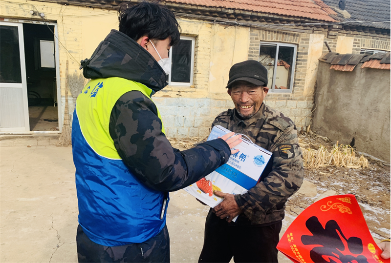 1月15日,志愿者们分别到日庄镇、南墅镇部分村庄,走访慰问了退役老兵,优抚对象,残疾、孤寡老人,困境儿童和困难家庭等,为他们送去牛奶、大米、面粉、桃酥、点心等过年慰问品,并送上新春佳节的祝福。