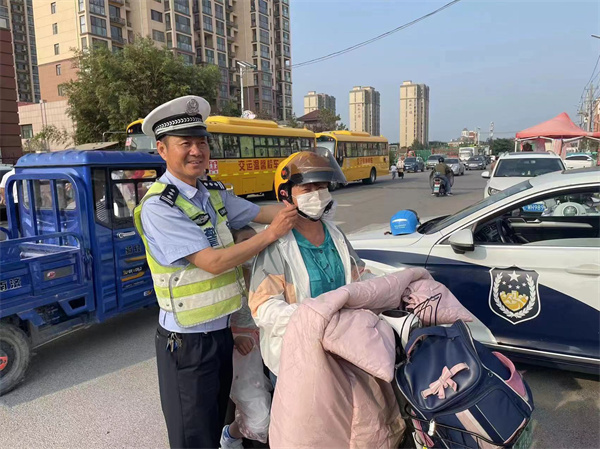 “无论是骑行还是乘坐电动车,都要佩戴安全头盔,保护好头部。”在少海小学的门前,一中队指导员刘书红在学校放学之际,一边向同学和家长宣传“一盔一带”安全出行的相关知识,一边向未佩戴头盔的同学赠送安全头盔,并细心为同学们示范头盔的正确佩戴方法。“骑电动车出行虽然方便,但是一旦发生事故,骑乘人员的头部非常容易受伤,甚至会有生命危险,所以一定要注意'头顶安全',养成驾乘电动车、摩托车时自觉佩戴安全头盔的良好习惯。”