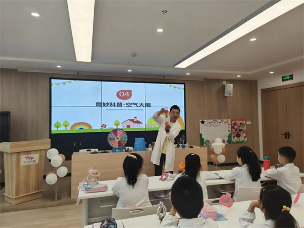 科普小实验环节中,小朋友和老师积极互动,现场气氛热烈。首堂科普课由专业科普老师通过小实验为小朋友们分享气压、燃点和热点等方面的科普知识,有趣的实验、生动的讲解极大地调动了小朋友们的学习热情。