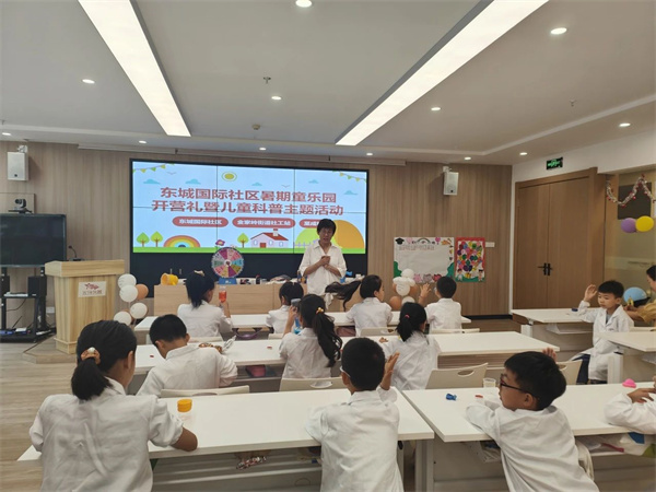 开营仪式上,工作人员向参与“童乐园”的家长和小朋友们介绍了系列活动的流程、要求及“童乐园”的服务内容。家长和小朋友们对将要开展的科普实验、非遗传承、社会实践等课程内容充满了期待。“我们平时上班没时间带孩子,老人身体不好又没办法帮忙,社区开设的‘童乐园’帮了大忙。”活动现场,东城国际社区居民李女士对“童乐园”赞不绝口。