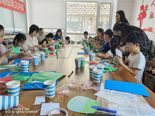 随后,工作人员带领大家动手制作小垃圾桶。废纸、用过的一次性纸杯等经过大家手工DIY,变成了一个个精致的小垃圾桶。