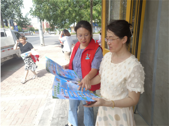 在垃圾分类进商户活动中,街道工作人员联合社区网格员深入商户,用简洁、通俗的语言向商户讲解垃圾分类相关知识,引导商户有效地处理生活垃圾,杜绝乱堆乱放的行为,通过商户辐射辖区居民,推动垃圾分类。