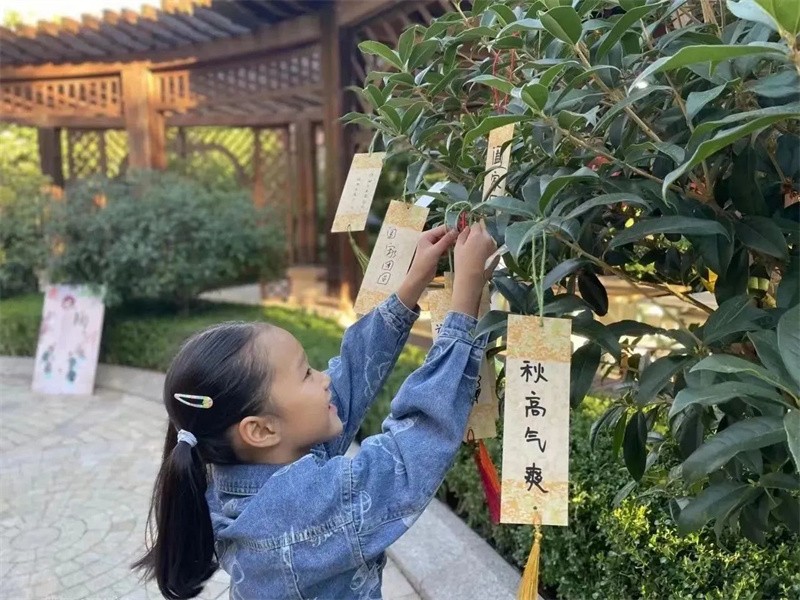 浓浓祖孙情,重阳乐融融。活动设置了投壶、蹴鞠等暖场小游戏,大家玩得不亦乐乎。在团扇DIY环节,祖孙二人两两一组,充分发挥自己的想象力,用干花在团扇上搭配各种图案。孩子们用稚嫩的小手制作团扇的同时,也传递着对长辈纯真的爱。