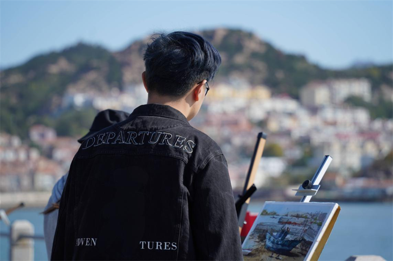 为积极践行国家、省、市《关于推动文化产业赋能乡村振兴的意见》,在崂山2023第二届沙子口乡村休闲度假季活动中,沙子口街道联合青岛大学美术学院举办了“山海福地 最美周末”青年写生艺术活动,通过绘画的形式展现沙子口山、海、城、湾浑然一体的自然风光。
