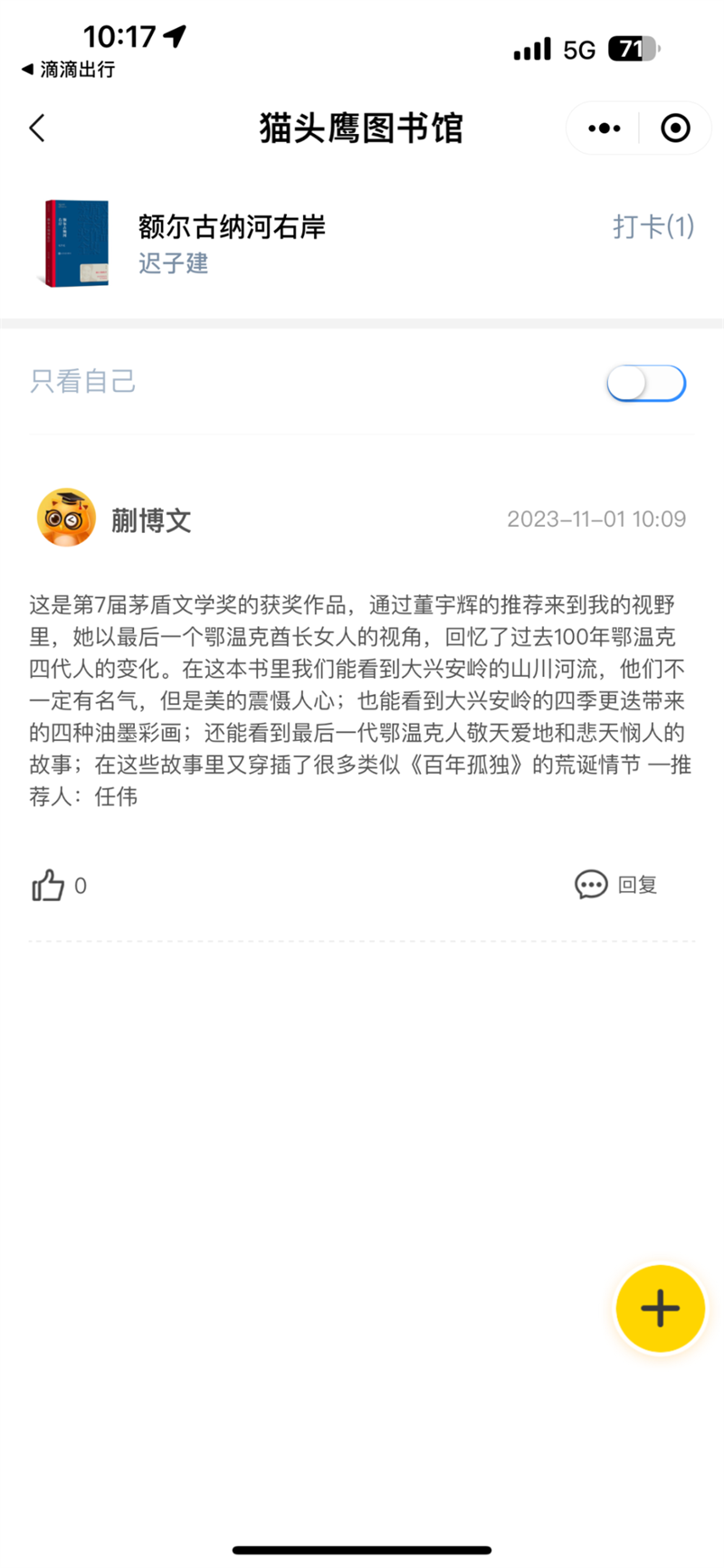 这是第7届茅盾文学奖的获奖作品,通过董宇辉的推荐来到我的视野里,她以最后一个鄂温克酋长女人的视角,回忆了过去100年鄂温克四代人的变化。在这本书里我们能看到大兴安岭的山川河流,他们不一定有名气,但是美得震慑人心;也能看到大兴安岭的四季更迭带来的四种油墨彩画;还能看到最后一代鄂温克人敬天爱地和悲天悯人的故事;在这些故事里又穿插了很多类似《百年孤独》的荒诞情节。