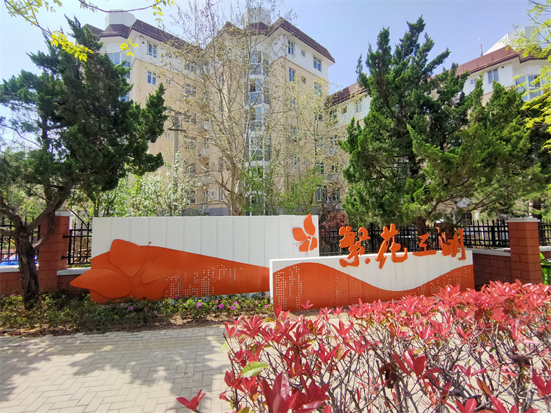 在三明路社区,市南区结合老旧小区改造,试点打造了“繁花三明”样板工程,建设充满浪漫氛围的三明花海和“微笑公园”。