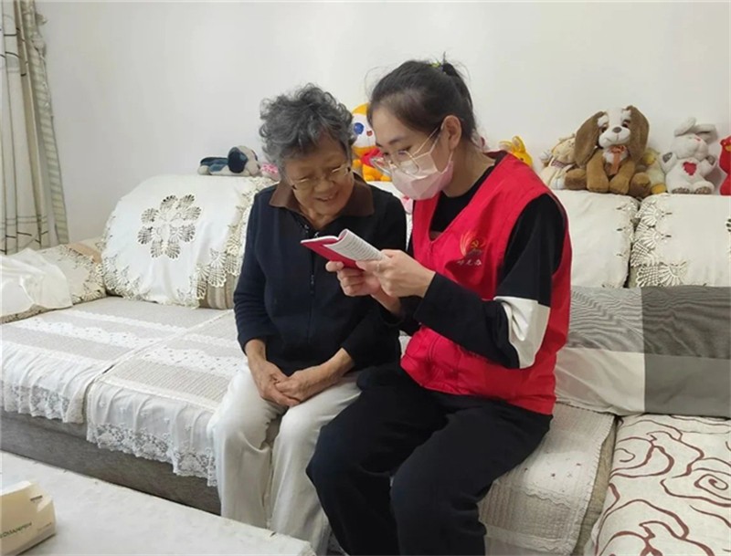 由孚珍是溪谷美寓小区第二党支部的党员,今年85岁。她身体还算硬朗,但是眼睛早就花了。社区入党积极分子高鑫主动请缨,上门为由孚珍读书,陪伴老人学习。“我和由奶奶约定,每个月都来陪她读读书、聊聊天,我们互相学习、共同进步。”高鑫说。此外,高鑫还是一名网格员,平时工作之余,她经常上门陪老人聊天解闷。她表示,这次送学上门活动让她在陪伴老人的同时,也提高了自身理论知识水平。