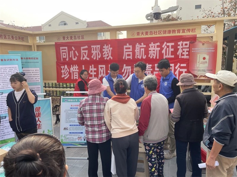 为进一步增强广大群众反邪、拒邪意识与能力,11月3日,青岛市崂山区金家岭街道综合治理中心联合青大麦岛社区,以“社区集市”活动为契机开展反邪教宣传活动。