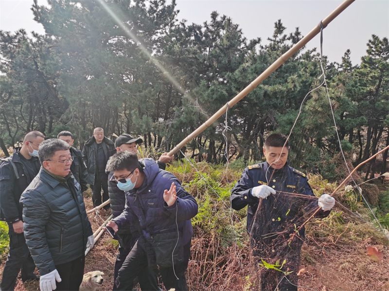 各单位也组织专门力量,重点对浮山、金岭山、午山、南北岭、劈石口等候鸟集中栖息区域进行巡查巡护,彻底清理和销毁猎套、猎夹、鸟网等非法猎捕工具,为候鸟提供安全的野外生存环境。