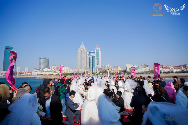 青岛是一座山海缱绻,浪漫无际的城市。11月12日,“海誓山盟·为爱奔赴”2023年青岛市市南区新时代文明实践集体婚礼隆重举行,近百对即将步入婚礼殿堂的新人在亲朋好友、广大市民的见证和祝福下,共同感受了这场因为爱情,被赋予特殊浪漫意义的集体婚礼。