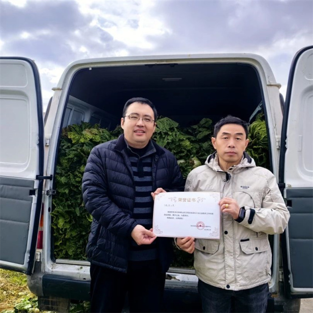 得知张先生困难后,金家岭街道总工会迅速行动,利用齐鲁工惠APP、基层微信工作群等平台发布“爱心助农-助力白菜滞销”志愿活动倡议,鼓励志愿者及爱心单位和个人积极参与。街道辖区内基层工会积极响应,在街道总工会的带领下,青岛腾睿和建设工程有限公司、青岛市崂山区马拉松运动协会、中建三局第一建设工程有限责任公司青岛分公司、中建八局四公司、青岛大学国际交流中心、青岛山东头实业股份有限公司等多家工会委员会通过“以购代帮”的方式,共认领14000斤白菜,以实际行动帮助张先生及时解决大白菜销售难题,把温暖送到他们的心坎上。认购现场,街道总工会还为认购单位颁发了认领证书。