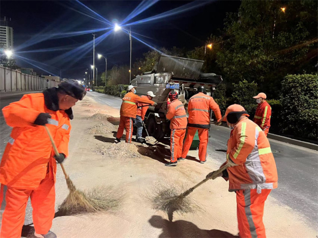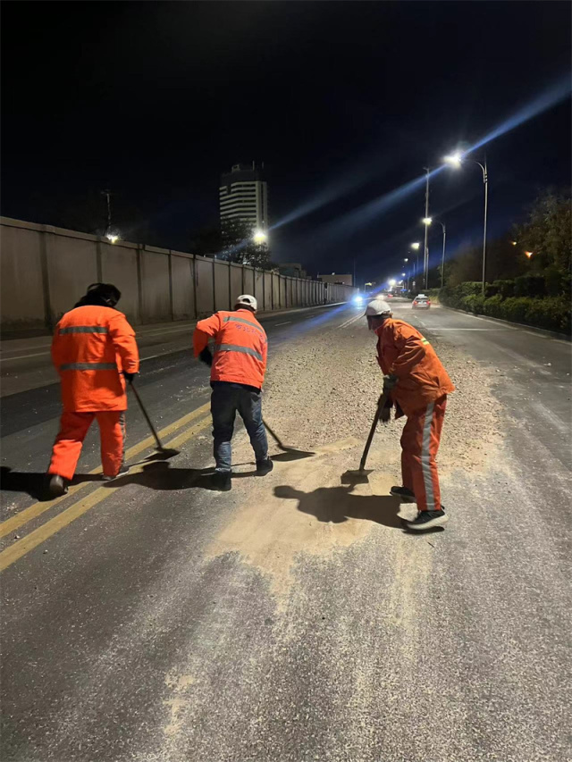 近日,青岛市市北区环卫一公司大港分公司晚11点左右接到交警来电,称杭州支路电厂桥附近车行道路撒漏大量沙土石子,存在极大安全隐患。