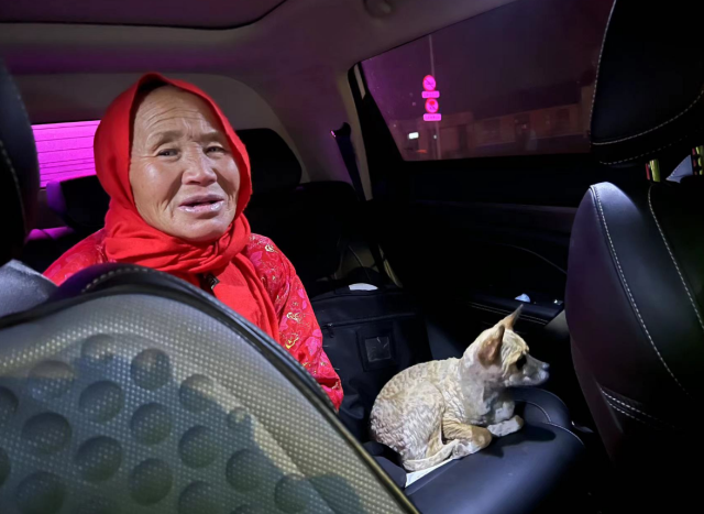 当高速交警赶赴现场时,发现这名老人精神状态不佳,还抱着一只狗,由于天气太冷,老人身体已经有点透支,工作人员决定先将她带到高密收费站。