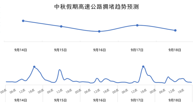 综合近年中秋假期车流量变化规律,假期前一天出行车辆明显高于假期均值。据统计,2021年至2023年中秋假期前一天在途车比假期均值分别高13.9%、7.8%、15.1%。9月14日(假期前一天)下午起,高速公路交通压力逐渐增大,17时-20时拥堵程度较高,峰值出现在18时-19时。9月15日(假期第一天)出行需求依然旺盛,9时-12时是出程高峰时段,峰值出现在10时-11时;9月17日(假期最后一天)返程集中,15时-18时为高速返程拥堵高峰,峰值出现在16时-17时。提醒市民合理安排时间,错峰出行。