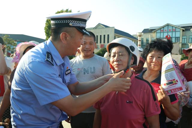 青岛交警城阳大队民警毛轩现场宣讲、演示安全头盔和安全带的正确使用方法,引导村民自觉加强头盔、安全带佩戴和使用意识。民警通过有奖问答与现场的群众开展互动,讲解酒驾、超速、闯红灯等违法行为的危害后果,向群众宣传交通法规和安全出行常识,回答正确的群众可获得“交警小熊”纪念品,观众积极踊跃抢答,将现场气氛推向高潮。