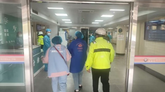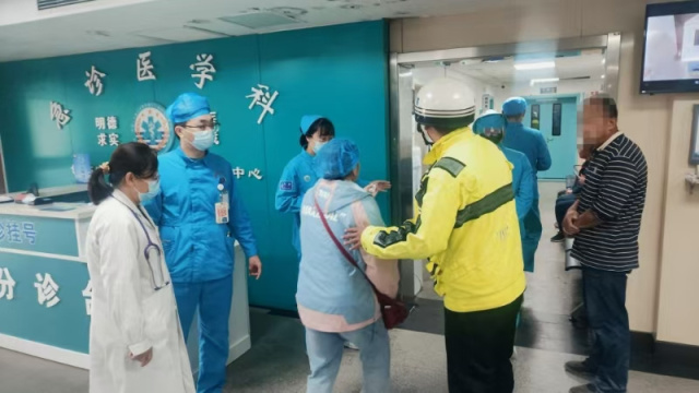 10时46分许,青岛交警李沧大队四流中路中队接到上级指令后,中队指导员张庆辉迅速与当事人取得联系,简要了解伤员情况及车辆位置,立即派遣附近巡逻的铁骑警力杨阳、王泽前往伤员所在位置,同时上报交警支队指挥中心。11时许,杨阳、王泽在重庆高架路延寿宫路上桥口附近与伤者所乘车辆会合后,迅速开启警笛、警灯,二人默契配合、交替前行,快速开辟绿色通道,途中得到了市北、市南交警的协同配合,原本至少20余分钟的路程仅用时10分钟便将伤员安全送达971医院,为伤员赢得了宝贵的救治时间。到达医院后,警员们积极协助伤员办理挂号、就诊等相关手续,直至伤员得到妥善安置后才放心返回岗位继续执行巡逻任务。伤员及同事对交警的护送连连道谢。