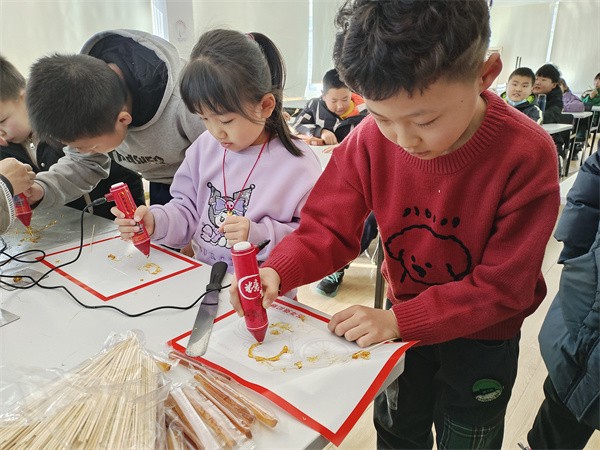 在迎新春的喜庆氛围中,由青岛市崂山区王哥庄街道文体中心主办的“国韵初识”非遗课堂为辖区内的孩子们带来一场别开生面的“甜蜜”体验活动——糖画。吸引了众多群众和儿童的热情参与。