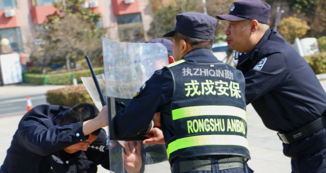 实操训练环节,安保人员首先进行了队列训练,整齐划一的动作展现了大家良好的精神风貌。王哥庄派出所李猛警官结合实战,为大家讲解了面对突发事件应对处置方法,及时正确地制暴方法及确保人员安全、自身安全防范等知识,重点针对在日常工作中可能出现的突发事件的正确处理,对盾牌、遮挡布等防爆器材的使用方法和操作要领进行了示范和操练。