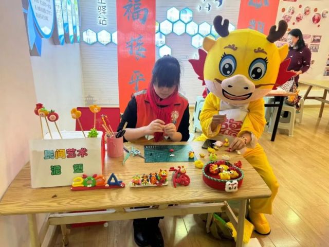 在这里,居民可以跟着老师学习最新潮的毛线钩织方法,边动手边聊天,在轻松的氛围中暂时忘却生活的烦恼;可以跟着泥塑老师学习制作各式各样的泥塑工艺品,赋予泥土以鲜活的生命,传承指尖上的泥土艺术;可以选一款皮影人偶,在灯光摇曳下编织一个动听的传统文化故事,来一场传统文化的心灵之旅……