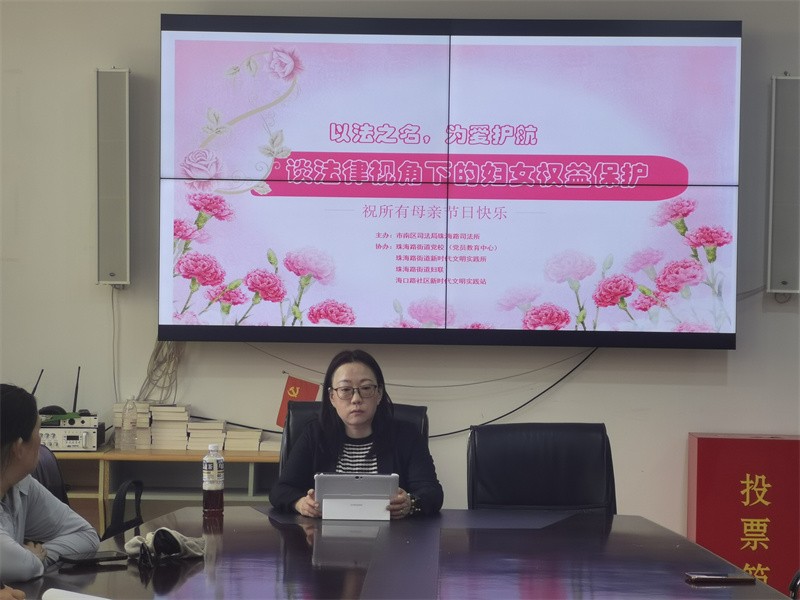 5月10日下午,在母亲节来临之际,青岛市南区司法局珠海路司法所联合珠海路街道党校(党员教育中心)、珠海路街道新时代文明实践所、珠海路街道妇联、市南联泰法律服务所走进珠海路街道海口路社区新时代文明实践站开展母亲节普法活动,引导广大妇女和家庭尊法学法守法用法,提升妇女依法维护自身权益的意识和能力,促进家庭和谐和社会稳定。以法律之礼,守护每位母亲的合法权益。