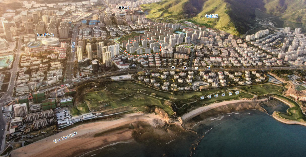 该地块位于崂山区规划梅岭东路以南、规划石老人一路以东,属于主城区极为稀缺的黄金地段。该地块自然禀赋得天独厚,东依午山公园,南邻滨海城市公园和石老人沙滩,与海岸线直线距离仅600米,山、海、城共融。前排住宅均为低密度社区,叠加地势高差,视野开阔无遮挡,底层看海绝无仅有,具备打造高品质海景房的先天优势。