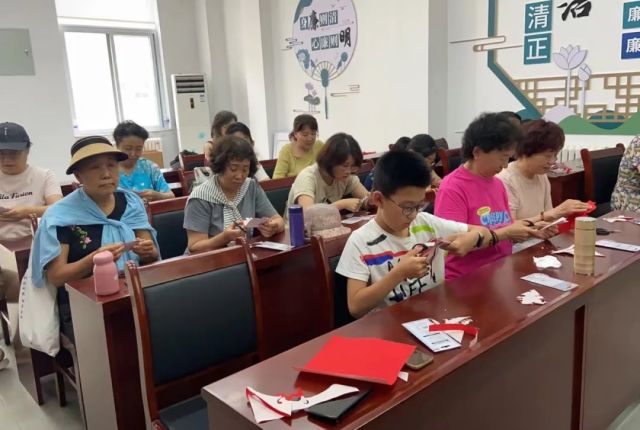 7月10日上午,颐都社区剪纸课开课了。活动现场,专业的剪纸老师详细讲解了剪纸的基本技巧和方法,从纸张材料的选择,到图案设计的构思,再到剪裁技巧的展现,每一步都讲解得十分到位。随后,在老师的带领下,大家纷纷拿起剪刀和红纸,创作自己的剪纸作品。