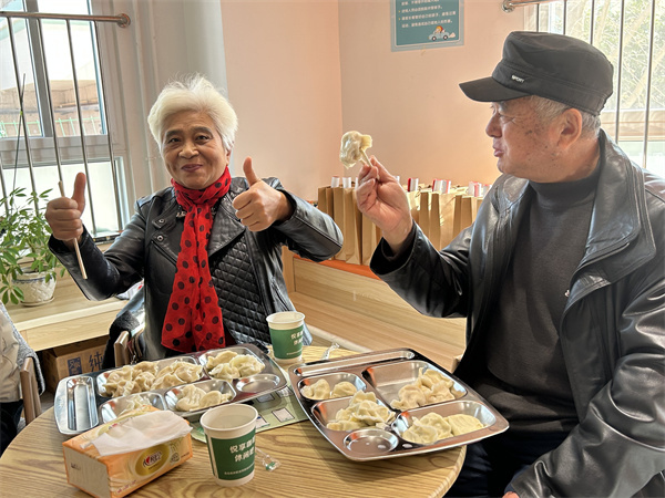 临近中午,安心餐厅现场提供冬至水饺供前来参与活动的居民们品尝,大家围坐在一起,饺香四溢“品”冬至、欢声笑语“话”家常,热腾腾的饺子宴将活动的氛围推向了高潮。