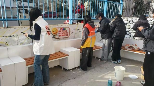 近日,青岛市崂山区金家岭街道泰都社区邀请青岛科技大学艺术学院的师生走进建飞花园一期小区“暖阳一角”,开展了以“家园新貌·小区美化进行时”为主题的新时代文明实践绘画志愿服务活动。