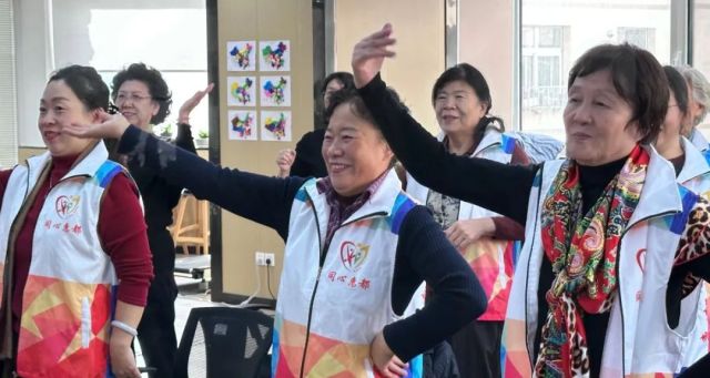 在一片欢声笑语中,开班仪式温馨启动。通过互动游戏和齐唱红歌等暖场活动,大家迅速打破陌生感,彼此间的距离在轻松愉悦的氛围中悄然拉近,为接下来的课程营造了和谐欢乐的氛围。随后,在社区工作人员的带领下,大家满怀热情地投入到拍打养正操的集体锻炼中。随着音乐的节奏,大家动作整齐划一,时而拍肩打背,时而轻拍腰腹,每一次拍打都仿佛是在为身体注入活力,驱散疲惫。