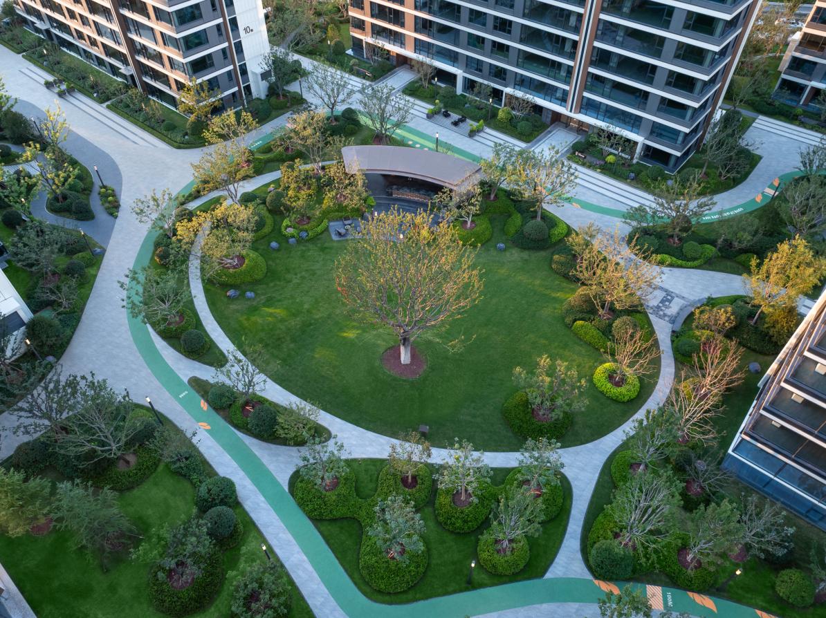 如今全园500余棵乔木里,胸径20公分以上者超220棵,树龄超30年的达50棵,中央下沉庭院的悬浮栈道串起约1180㎡乌桕林,一步一景皆是“取景崂山”的从容。在和樾府,没有等树长大的遗憾,只有推门见荫的惬意,真正的园林,从不是栽下小苗的期待,而是让时光里的生命力,与生活撞个满怀。