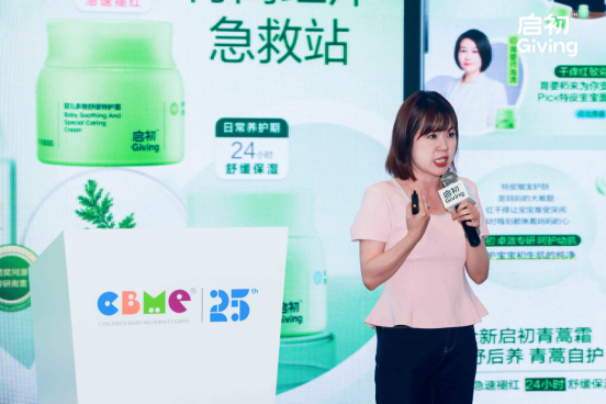 启初品牌总监李俊宣布品牌全新定位——中国婴童医研护肤品牌。