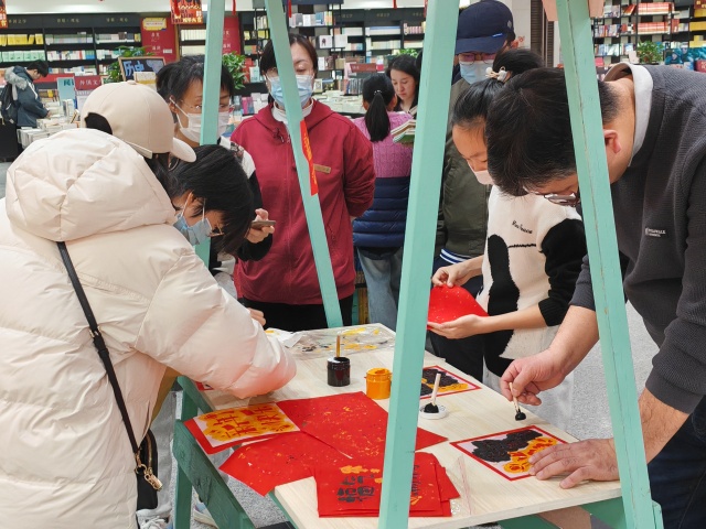 在青岛书城,首个“非遗版”春节热度加持下,前来购书、逛市集的市民游客络绎不绝。“节前我们就邀请剪纸、泥塑、糖人、布艺老师现场开展了系列非遗体验活动,受到参与市民的一致好评,春节假期客流同比实现增长。”青岛新华书店书城营销工作负责人刘文川说。书城还开展了新春文化市集,集图书、文创、特色食品、非遗、文化体验和文艺演出于一体,引进央视文创“大春晚季”、青啤系列文创、饮料集团系列文创等产品,打造文化体验区,还有各种买赠、集章、抽奖、游园等活动。此外,开展朗读者、音乐会、故事会等活动累计近20场,有力增强门店体验感,聚集人气,促进节日销售。
