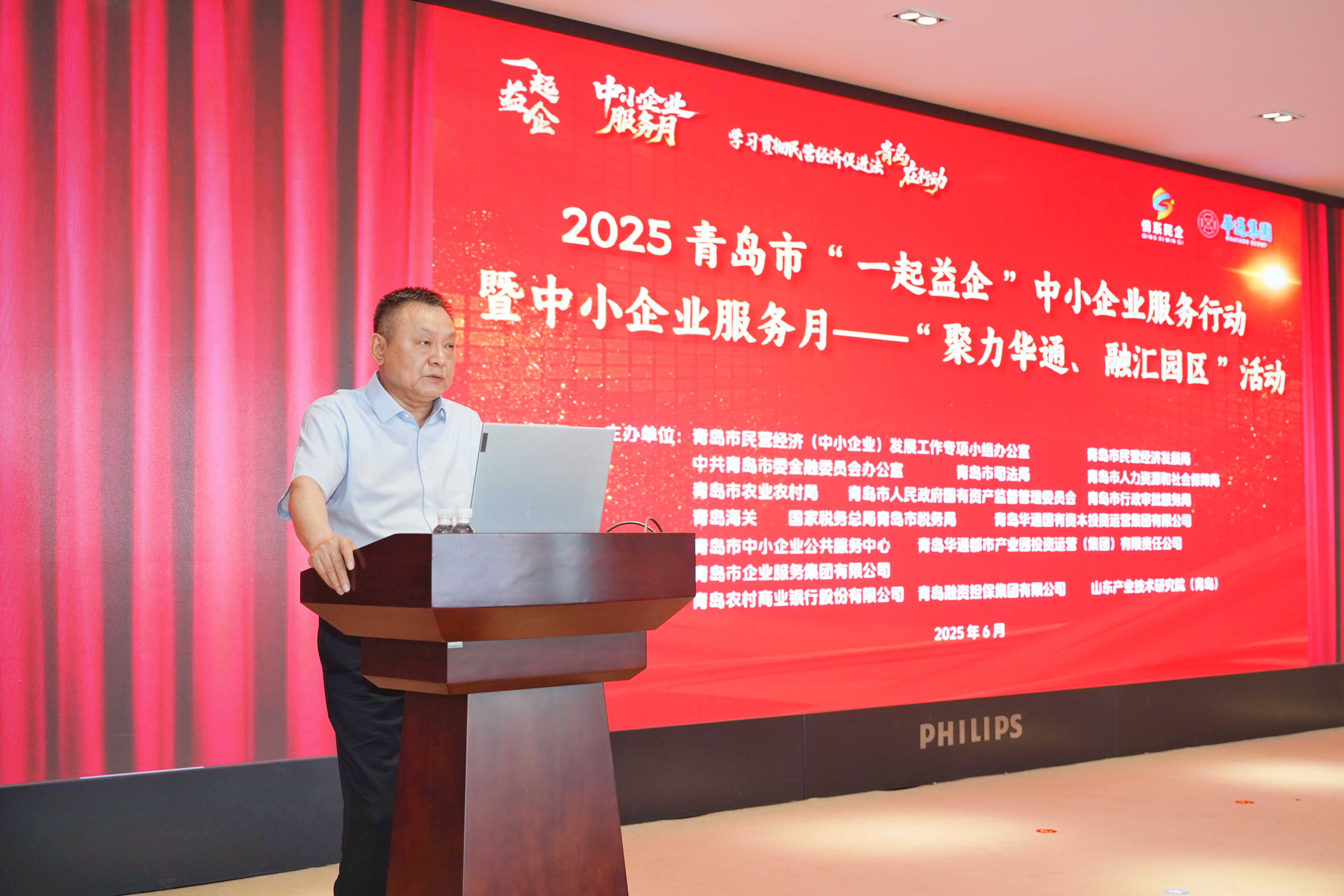 6月17日,为深入贯彻落实党中央、国务院和山东省关于支持中小企业的决策部署,以园区为载体,加强中小企业服务,推动中小企业高质量发展,青岛市民营经济(中小企业)发展工作专项小组办公室、市民营经济局、市委金融办、市司法局、市人力资源社会保障局、市农业农村局、市国资委、市行政审批局、青岛海关、市税务局、青岛华通集团等联合举办2025青岛市“一起益企”中小企业服务行动暨中小企业服务月——“聚力华通、融汇园区”活动。来自全市有关园区负责人、企业共近百人参加。