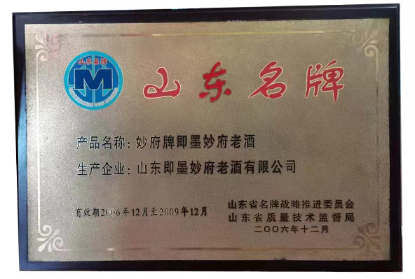 20、2006年山东省名牌战略推进委员会、山东省质量技术监督局授予妙府“山东名牌”;