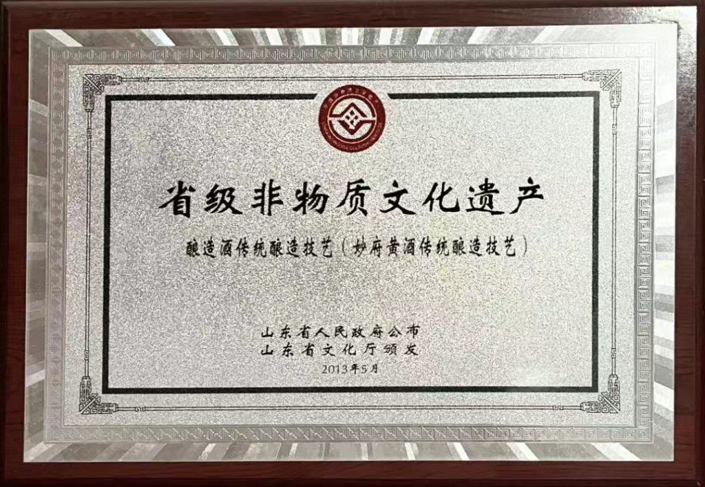 22、2007年1月妙府申报青岛市非遗成功。《即墨黄酒传统酿造工艺》被认定为市级名录,于秦峰为即墨黄酒传统酿造工艺代表性传承人。
