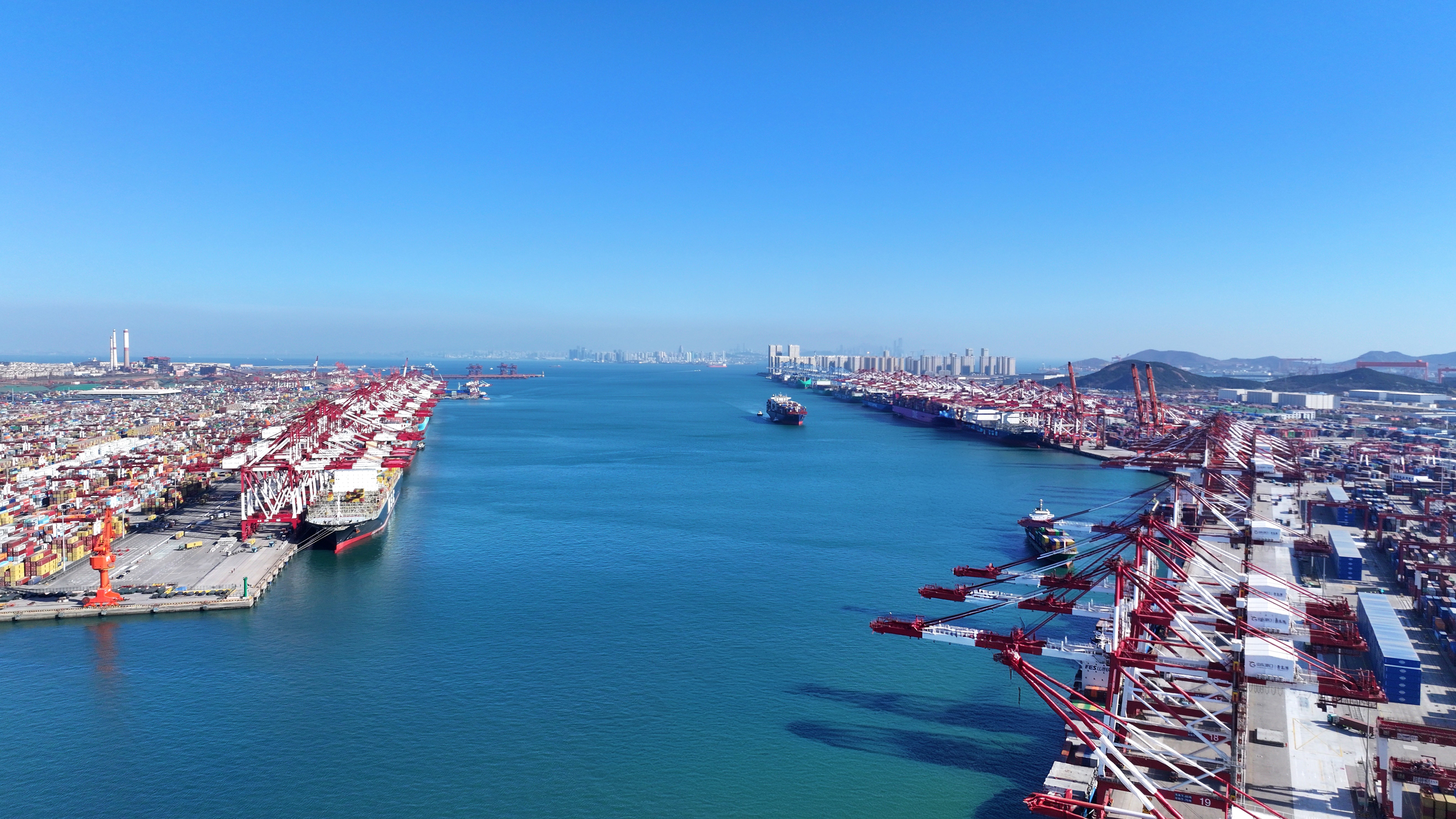 今年以来,青岛港锚定高质量发展目标,坚持“海陆”双向发力,持续织密物流航线网络,新增集装箱航线20条,航线总数扩容至近240条,覆盖全球180多个国家和地区的700多个港口,对接共建“一带一路”及RCEP国家的航线占比超过60%,推动“新三样”、高端设备、精密仪器等高附加值货种源源不断驶向世界各地,成为中国与新兴市场贸易往来的“黄金通道”;依托陆向联动,建成54个内陆港、开通86条海铁联运班列,1-11月份青岛港海铁联运箱量完成262.5万标准箱,同比增长11%,继续保持全国沿海港口首位。