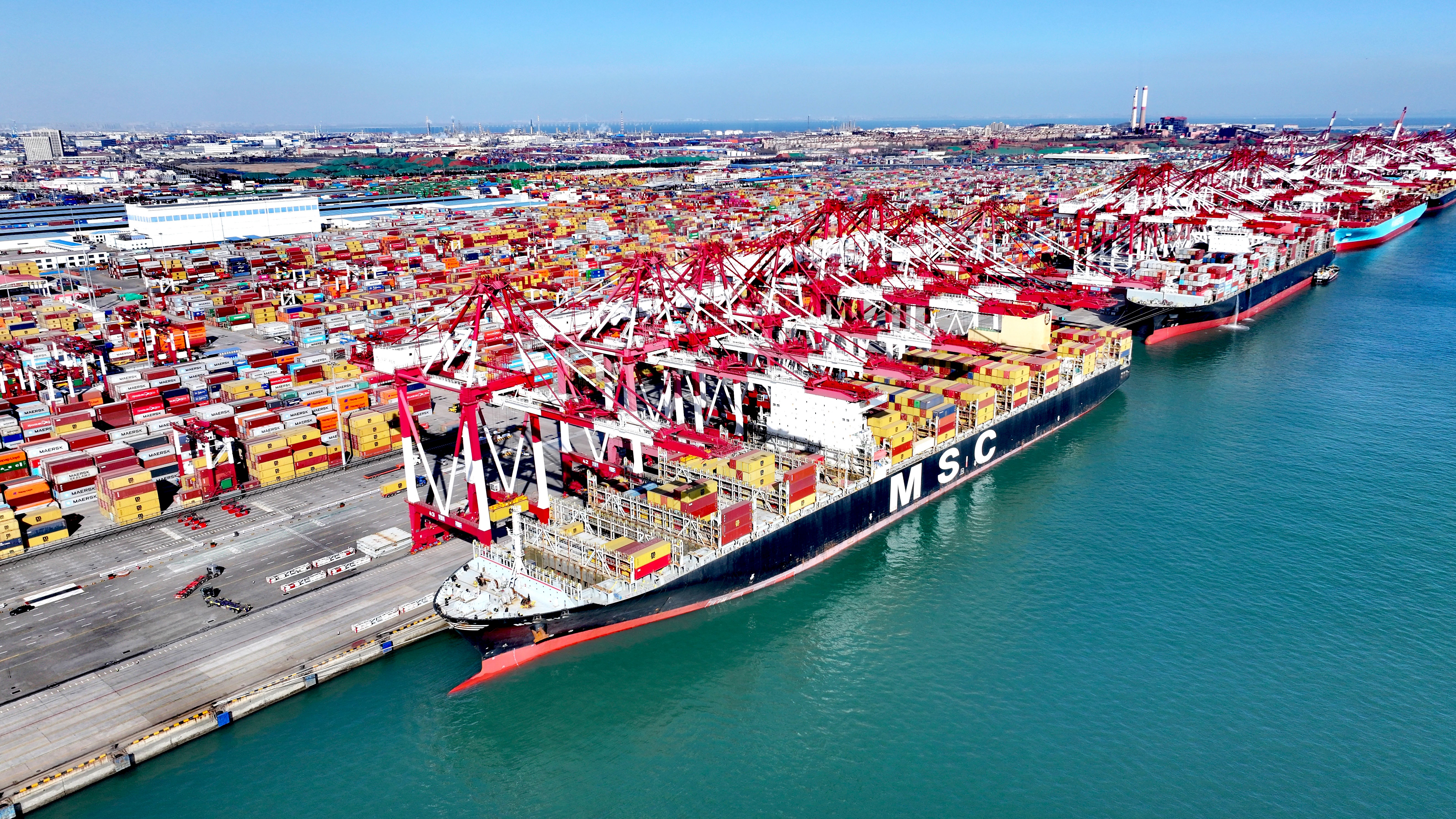 站在新起点,山东港口青岛港将全力冲刺年度任务目标,持续织密航线网络、夯实硬件基础、深化科技创新、推进绿色转型,增强国际贸易综合实力,助力国家更高水平对外开放,为海洋强国、交通强国建设贡献更坚实的港口力量。