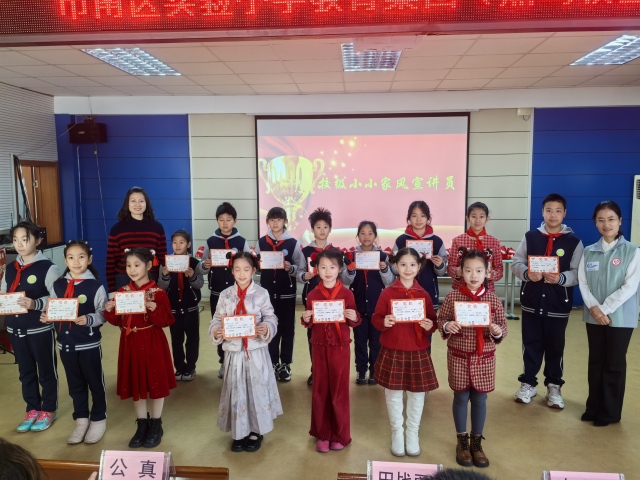 从金融理财、地质研究到芯片制作,从数字反哺到传统技艺传承,队员们和家长们分享了亲子社会实践活动的精彩瞬间,他们用行动诠释了传承与探索的力量,展现了新时代少年勇于实践、善于传承的精神风貌。学校为校级“小小家风宣讲员”颁发了证书,鼓励队员们继续传承和弘扬优良家风。
