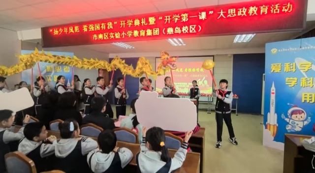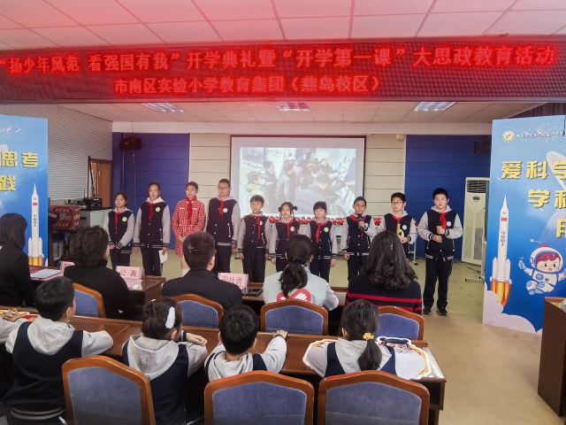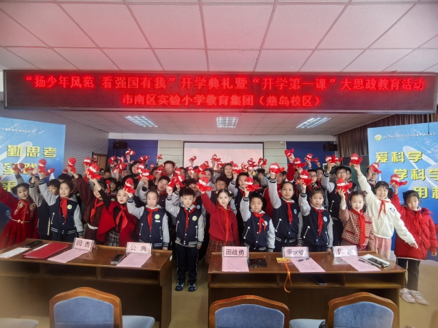 为激励少先队员在新学期展现少年担当,积极参与志愿服务,传承中华优秀传统文化,更好地践行社会主义核心价值观。青岛市市南区实验小学教育集团(燕岛校区)以“扬少年风范看强国有我”为主题举行了开学典礼暨“开学第一课”大思政教育活动。青岛市市南区委社会工作部一级主任科员田战勇,市南区少先队总辅导员、思政科负责人公真,市南区汇百川社会工作服务中心负责人李庆收,市南区教育研究指导中心仪琳出席了活动。