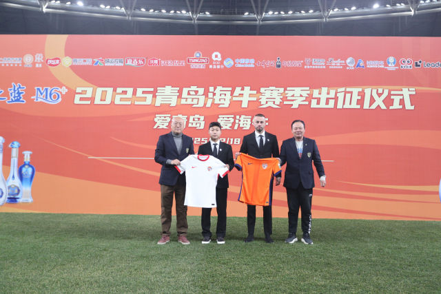 2月18日,洋河梦之蓝M6·爱青岛爱海牛——青岛海牛2025赛季出征仪式在青春足球场顺利举行,全新赛季即将拉开序幕。2025赛季,青岛海牛足球俱乐部将继续秉承为青岛这座城市而战的理念,全力拼搏。活动期间,俱乐部新赛季球衣亮相。此外,俱乐部向支持青岛海牛的赞助商、合作媒体颁发了特别贡献奖。新赛季的大旗由队长牟鹏飞从青岛市副市长赵胜村手中接过,标志全新赛季开始。