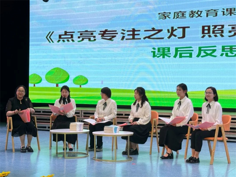山东省首批协同育人家庭教育名师、市南区家庭教育教研员从德娟详细介绍了“研·行·评”三阶六步教研模式及“学校+区域”四级管理体系,突出了以科研课题与教学法驱动教研的特色;山东省首批协同育人家庭教育名师、市南区家庭教育兼职教研员、青岛文登路小学教师郭斐聚焦“省优质课打造”与“名师培养”,分享了“存在主义父母效能成长团体”教学模式,以及省、市基地校特色课程开发与公益宣讲经验;青岛市教学能手、市南区家庭教育名师工作室主持人、市南区文登路幼儿园副园长姜文文围绕名师工作室建设,阐释“共研·共长·同辐射”教研模式,并通过“色标研磨工具”“三级联动教研体”等案例,展示优质课例打磨及难题破解的路径;市南区姜文文家庭教育名师工作室成员、市南区栖霞路幼儿园教师李丽结合所展示课例《点亮专注之灯 照亮衔接之路》,分享了“精准切口+游戏贯穿+信息技术融合”的课堂设计亮点,并对复合型专注力培养进行反思与优化;市南区家庭教育骨干教师、青岛贵州路小学教师李晓聪以“AI循证教研”为核心,展示希沃循证课堂系统的数据采集与智能诊断功能,交流数据驱动教研、提升教学成效的实践与探索;市南区家庭教育青年骨干教师、青岛榉园学校教师彭钰琦则从政策理论学习、案例实践应用等角度,分享研学成长心得与备课经验,展现了青年教师在家庭教育领域的探索与成长。